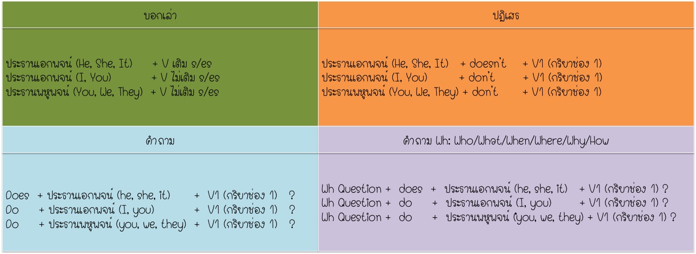 - กริยาส่วนใหญ่เติม s ได้เลย เช่น eat -> eats