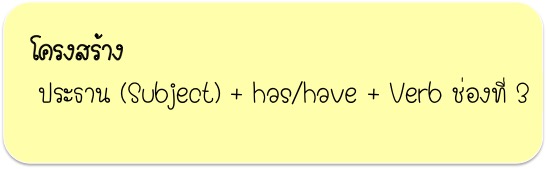 - ตัวอย่างเช่น Recently, she has been playing too much VDO game.