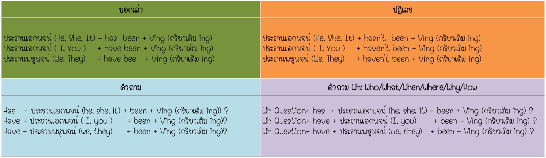 - ตัวอย่างเช่น Recently, she has been playing too much VDO game.