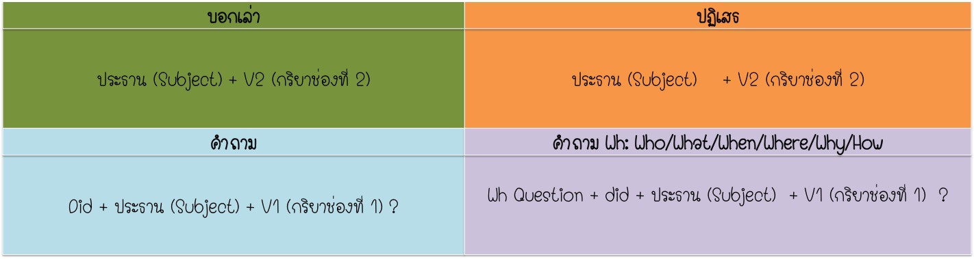 | Case 2 | พูดถึงเหตุการณ์หรือการกระทำในอดีตที่มีการระบุช่วงเวลา |