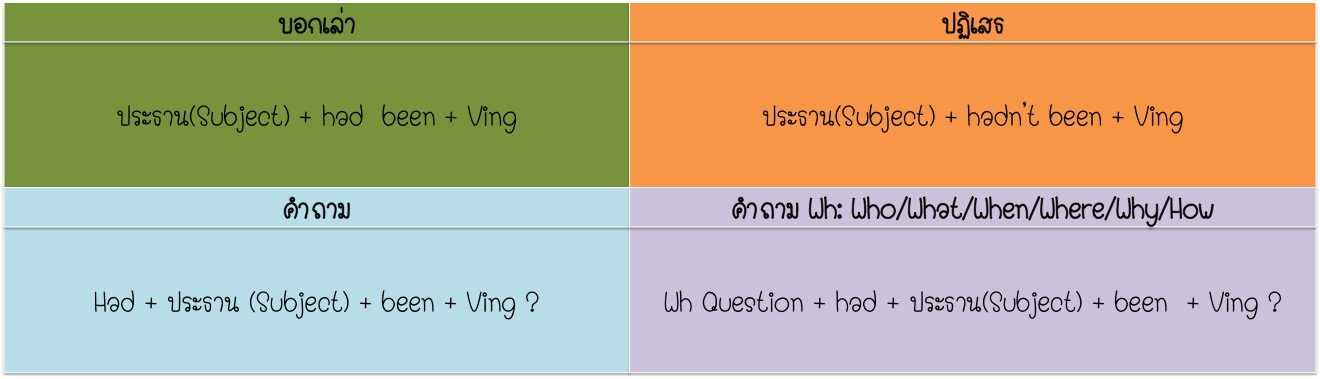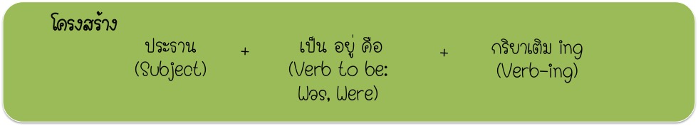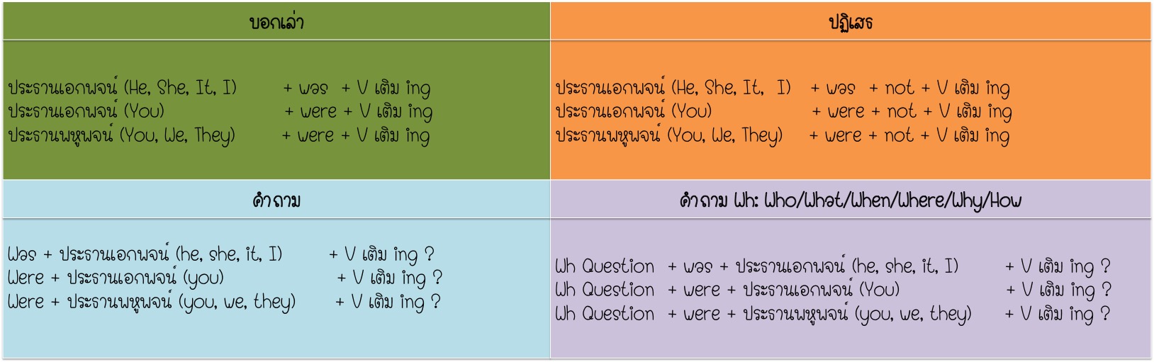 | Case 1 | พูดถึงเหตุการณ์หรือการกระทำในอดีต | ตัวอย่างเช่น I was playing.