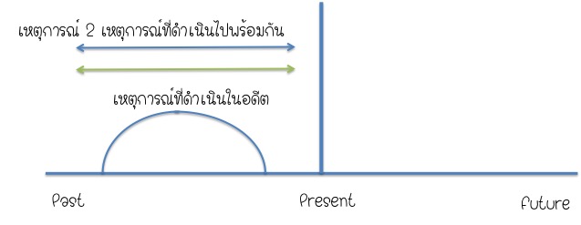 | Case 3 | พูดถึงการกระทำหรือเหตุการณ์ในอดีต 2 เหตุการณ์ที่กำลังเกิดขึ้นในเวลาเดียวกัน |