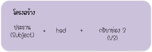 | Case 1 | พูดถึงเหตุการณ์หรือการกระทำในอดีตซึ่งแสดงให้เห็นว่าเหตุการณ์หนึ่งเกิดก่อนอีกเหตุการณ์โดยเหตุการณ์ทั้งสองเกิดในอดีต |