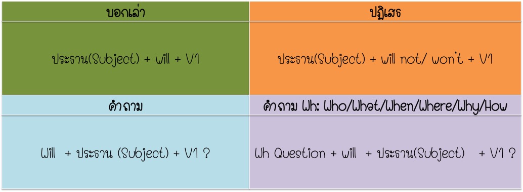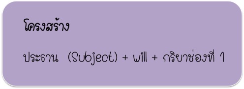 | Case 1 | ใช้ will ในการกล่าวถึงเหตุการณ์อนาคต |