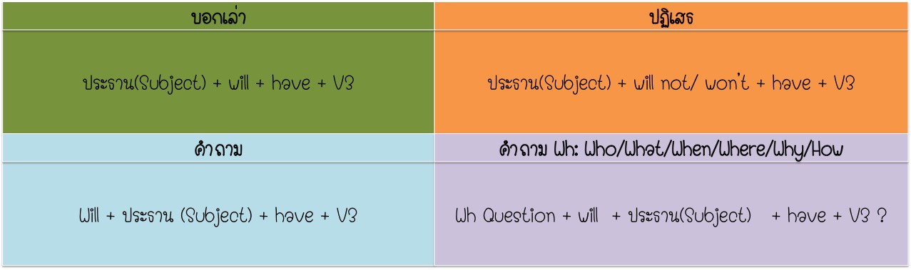 | Case 4 | ใช้ในประโยคที่เป็นการคาดการณ์หรือถามเหตุกาณ์ในอนาคต |