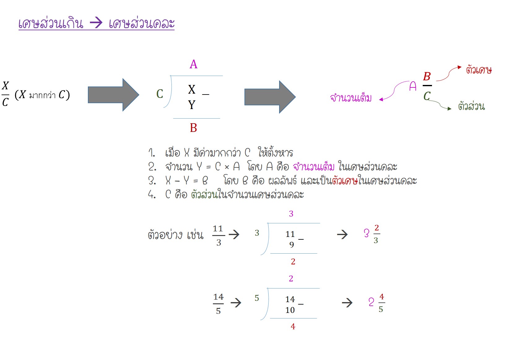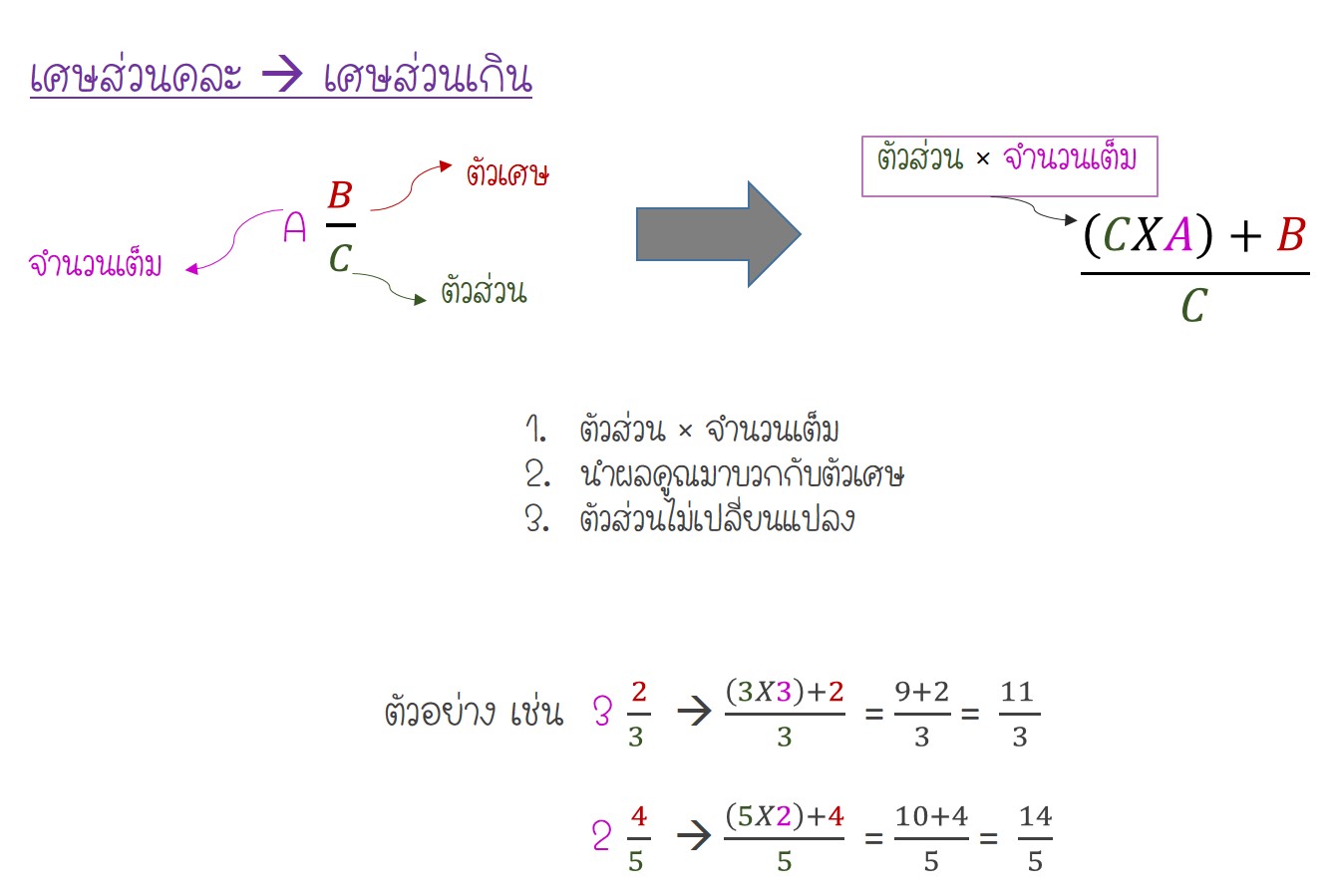 การแปลงเศษส่วนคละเป็นเศษส่วนเกิน