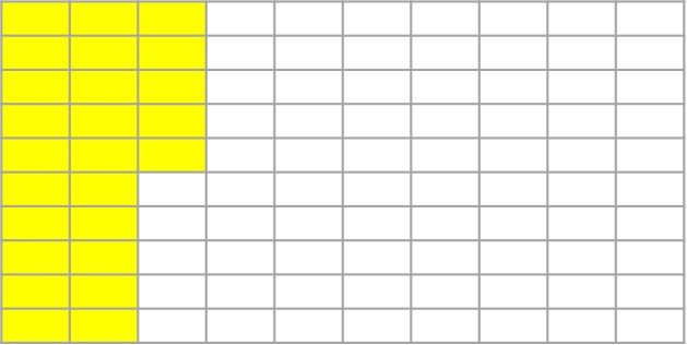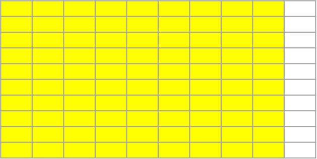 คำตอบคือข้อ ง สีเหลืองจะมีทั้งหมด 90 ช่องจากช่องทั้งหมด 100 ช่อง