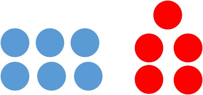 จากรูปข้อใดคืออัตราส่วนระหว่างลูกบอลสีแดงต่อลูกบอลสีฟ้า