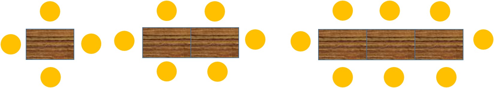 ถ้ามีโต๊ะ 3 ตัว จะใช้เก้าอี้จำนวน : (3 × 2) + 2 = 8 ตัว