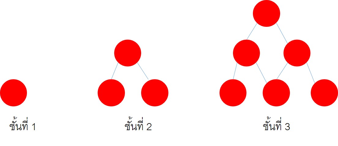 ถ้า 3 ชั้น จะใช้ลูกปัด: 1 + 2 + 3 = 6 ชิ้น